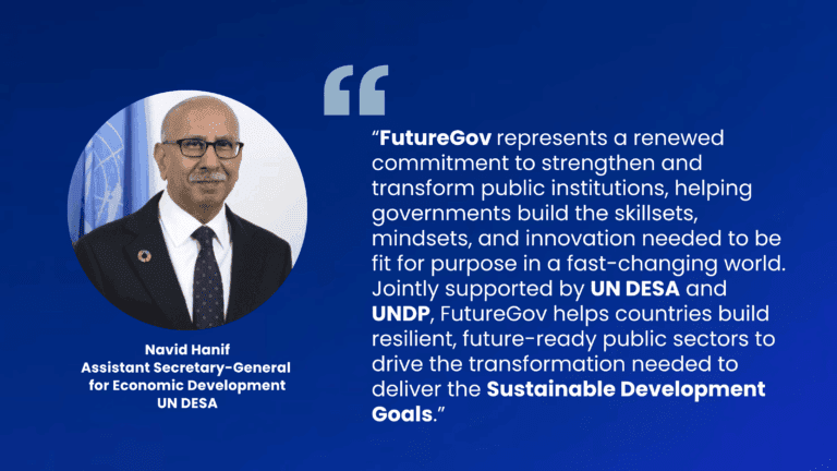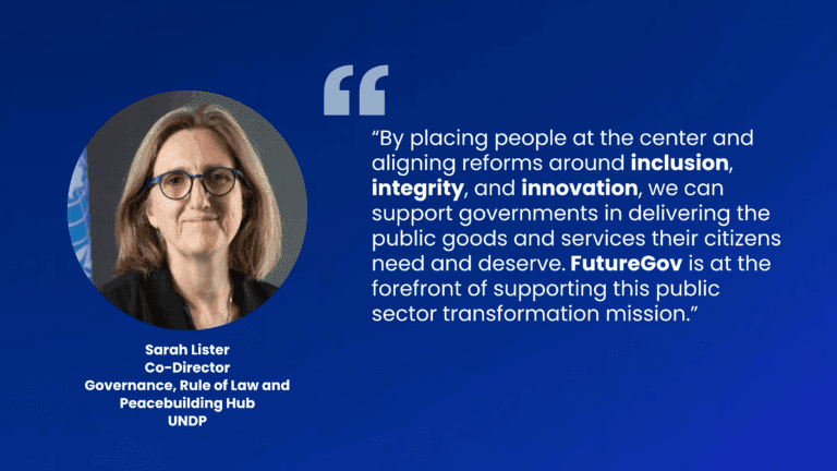 FutureGov is one of the UN’s 12 High Impact Initiatives and contributes to accelerating progress on the SDGs by strengthening public sector capabilities through Inclusion, Integrity, and Innovation
